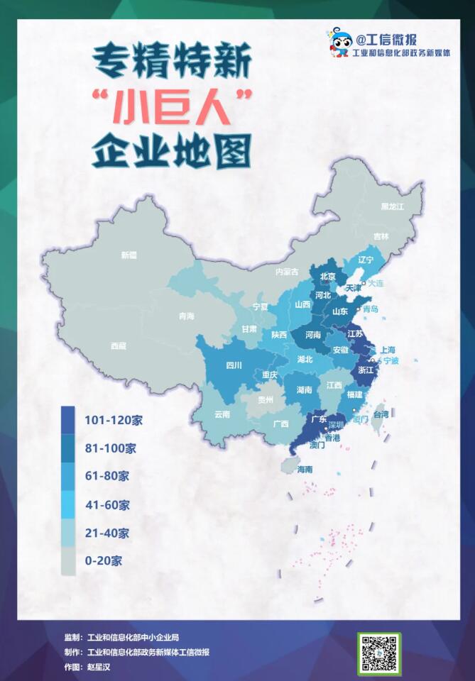 為深入貫徹落實(shí)習(xí)近平總書記關(guān)于“培育一批‘專精特新’中小企業(yè)”的重要指示精神,工業(yè)和信息化部已培育兩批1832家專精特新“小巨人”企業(yè),充分發(fā)揮其示范帶動(dòng)作用,引導(dǎo)廣大中小企業(yè)走“專精特新”發(fā)展道路,為提升產(chǎn)業(yè)基礎(chǔ)高級(jí)化和產(chǎn)業(yè)鏈現(xiàn)代化水平、構(gòu)建現(xiàn)代產(chǎn)業(yè)體系提供有力支撐。專精特新“小巨人”企業(yè)各地分布情況如下: