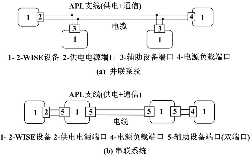 帶供電電源(含通信功能)和不帶供電電源(僅供通信)的2-WISE系統,可按并聯式和串聯式進一步分組,分別構建成4種2-WISE系統配置模型,并規定了相互間的連接關系與接口形式。