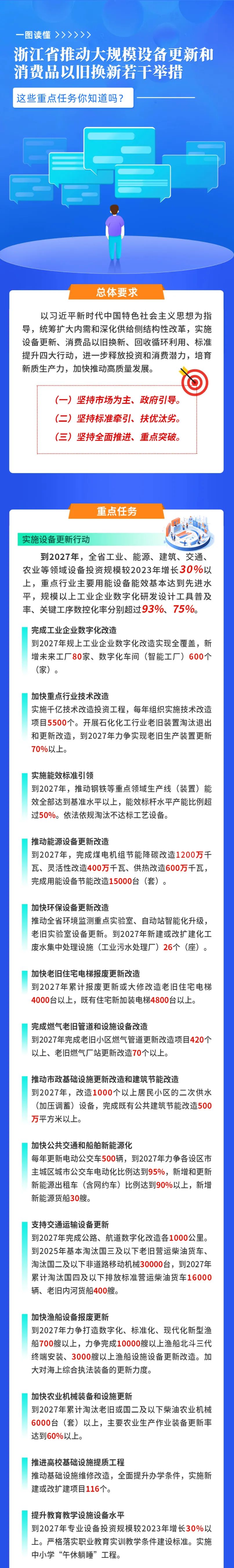 摘要:近日,浙江省政府印發《浙江省推動大規模設備更新和消費品以舊換新若干舉措》。
