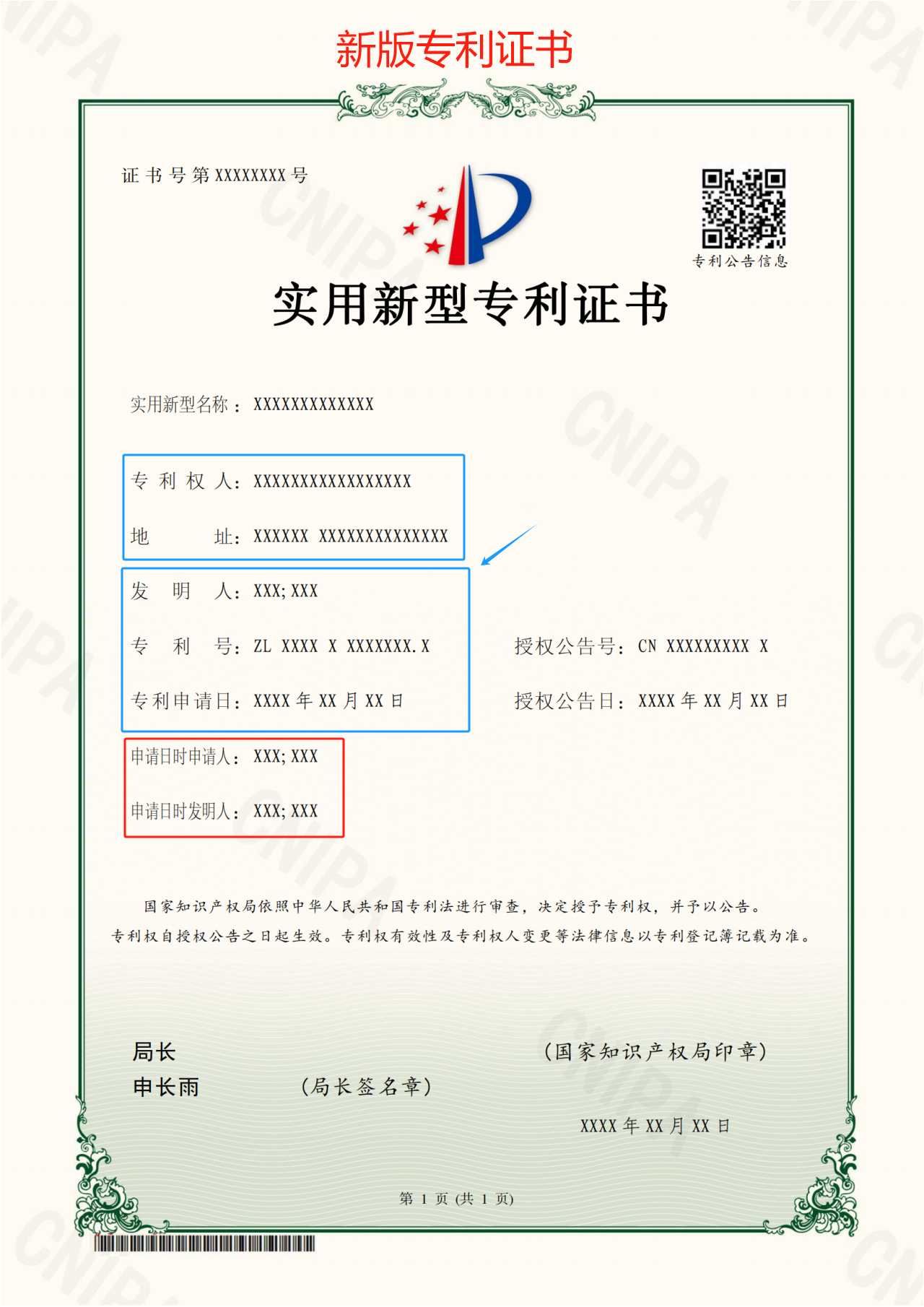 (新版實用新型專利證書和現(xiàn)版實用新型專利證書)