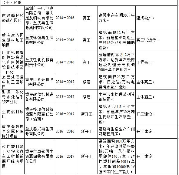 重慶市2016年重大前期項目名單(節(jié)能環(huán)保篇)