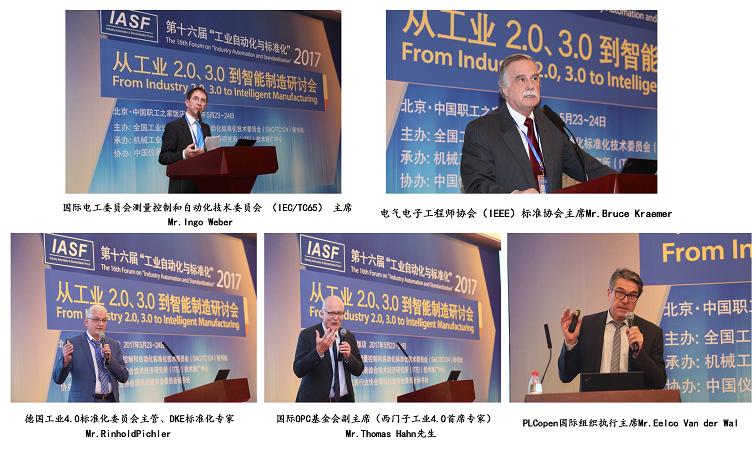 本次會議特別邀請了來自國際電工委員會測量控制和自動化技術委員會(IEC/TC65)、電氣電子工程師協會(IEEE)標準協會、德國工業4.0標準化委員會、PLCopen國際組織、德國電氣電子和信息技術委員會(DKE)、OPC基金會等智能制造相關的國際權威標準化和研究機構的知名專家做專題報告,與參會者共同分享和探討了智能制造相關領域的國際技術動態和實踐經驗。