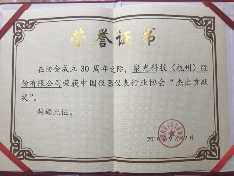 聚光科技(杭州)股份有限公司榮獲中國(guó)儀器儀表行業(yè)協(xié)會(huì)杰出貢獻(xiàn)獎(jiǎng)