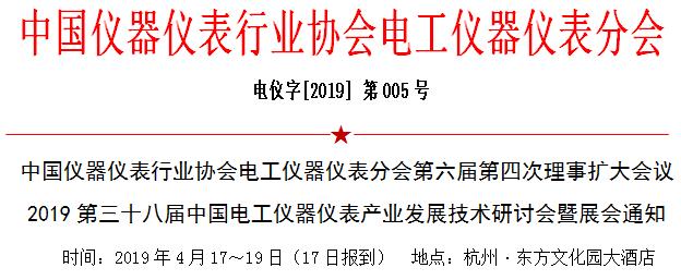 中國儀器儀表行業(yè)協(xié)會電工儀器儀表分會定于 2019 年4月17~19日在杭州東方文化園大酒店召開“2019 第三十八屆中國電工儀器儀表產(chǎn)業(yè)發(fā)展技術(shù)研討會暨展會”,同期召開“中國儀器儀表行業(yè)協(xié)會電工儀器儀表分會第六屆第四次理事擴(kuò)大會議”、“中國儀器儀表行業(yè)協(xié)會團(tuán)體標(biāo)準(zhǔn)系列會議”。