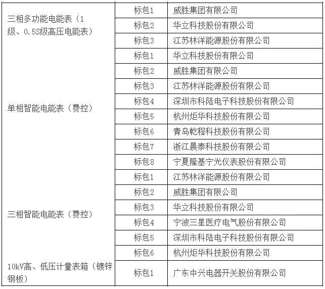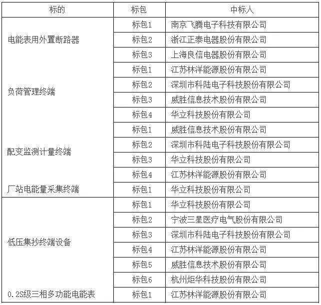 廣東電網(wǎng)有限責任公司2019年電能表、計量表箱、低壓集抄等營銷類設(shè)備框架招標(招標編號:0002200000043956)中標結(jié)果公布: