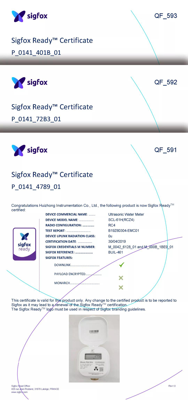 近日,匯中股份戶用超聲水表取得了Sigfox Ready產品認證證書,匯中海外市場拓展又添一重要基石。