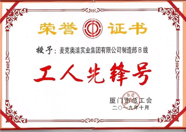 祝賀制造部B線榮獲“廈門市工人先鋒號”!