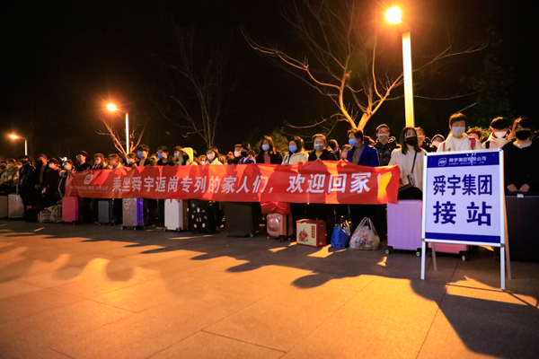 “乘坐舜宇返崗專列的家人們,歡迎回家。”2020年2月18日晚,高鐵余姚北站和寧波站接站口,迎接舜宇員工的橫幅格外鮮亮。三輛搭載著舜宇職工的“員工專列”先后抵達,近300名來自周口、阜陽、成都、貴州、南昌、上饒等地區(qū)的舜宇員工及其親屬友人在政府及公司工作人員的引導下,井然有序地出站。