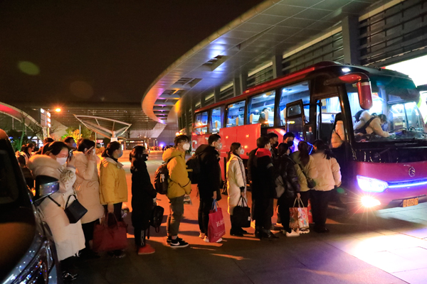 同時,公司還組織了由8輛大巴車組成的車隊,對這批特殊乘客進行專車接送,在上車前對所有人員進行體溫測量和消毒,并為員工安排了住宿點,進行必要的觀察休整,實現(xiàn)了由城點到站點、站點到廠點的三點無縫連接。