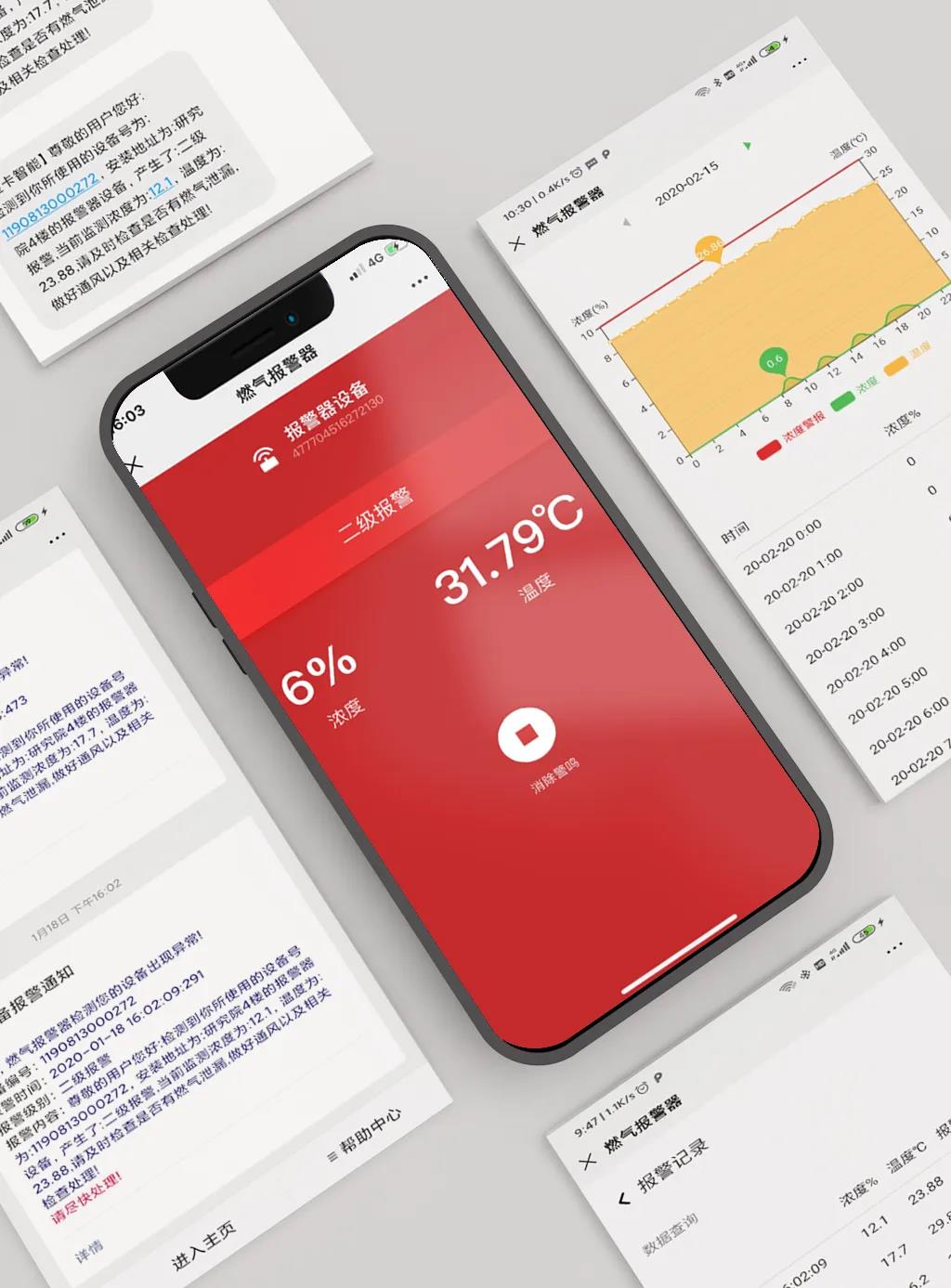 報(bào)警器會(huì)不間斷地采集當(dāng)前環(huán)境中的氣體濃度數(shù)據(jù),并存儲(chǔ)每個(gè)小時(shí)內(nèi)的最大值,用戶可以通過(guò)微信查詢到設(shè)備的歷史數(shù)據(jù)和報(bào)警信息,通過(guò)數(shù)據(jù)能夠清晰地勾勒出家庭的用氣情況,從而能提前發(fā)現(xiàn)潛在的泄漏風(fēng)險(xiǎn),及時(shí)處理,避免醞釀成事故。