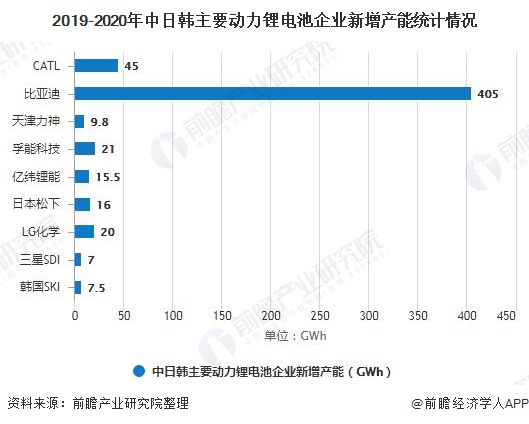 2019-2020年中日韓主要動力鋰電池企業(yè)新增產(chǎn)能統(tǒng)計情況