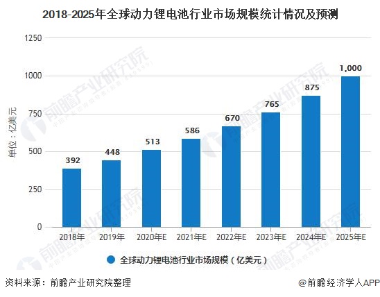 除電動汽車市場外,鋰電池也成為了各大應(yīng)用市場領(lǐng)先的電池技術(shù),包括移動設(shè)備、電網(wǎng)儲能等。國際市場研究機構(gòu)Adroit Market Research發(fā)布的報告稱,全球鋰離子電池市場將在2018-2025年的預(yù)測期內(nèi)以14.3%的復(fù)合年增長率增長,預(yù)計到2025年,全球鋰離子電池市場規(guī)模估計將超過1000億美元。易于獲得、高能量密度、低放電率和長壽命周期是使鋰離子電池優(yōu)于同類產(chǎn)品的一些關(guān)鍵特性,并有望促進全球市場收入。