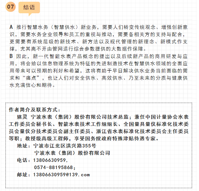 讓我們期盼并祝愿寧水集團新一代智能水表(智能水表3.0)能早日研制成功,早日進入工程化應用,早日為供水企業提供高性價比的海量數據。