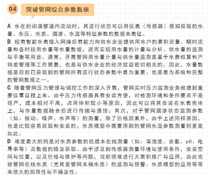 最近,寧水集團已正式啟動新一代智能水表(智能水表3.0)產品及供水新業務系統的商用化研發工作,在原先公司多個博士后課題研究基礎上進行商品化與工程化應用研究。可以預期,在不遠將來公司將為供水管網系統提供高性價比的水務綜合大數據,為管網現代化管理提供信息來源與決策依據(這方面詳細內容可參見附錄:“水表產品演進之路——從智能水表1.0/2.0產品向智能水表3.0產品邁進”一文)。至2020年初,公司在與浙江大學控制科學與工程學院合作基礎上,又先后與同濟大學環境科學與工程學院、寧波大學信息科學與工程學院等高校共同簽訂戰略合作協議,并聯合成立了“水務新技術研發實驗室”和“水務信息感知研發實驗室”,并將與寧波工業互聯網研究院等科研機構就水務新型傳感技術、供水關鍵核心業務等的解決方案展開合作研究。