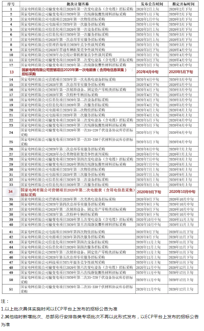 國網公司近日公布了2020年度集中采購計劃預安排的公告,其中電能表(含用電信息采集)今年還是進行兩次招標采購,第一次已于4月中旬開始投標,開標時間擬定于5月下旬。第二次招標采購時間擬定為9月下旬,開標時間為10月中旬。