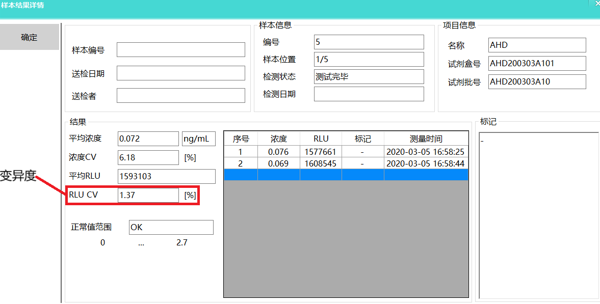 設備對試劑化學發光反應產生的光子量進行讀取,數值準確穩定,變異系數小于3%。