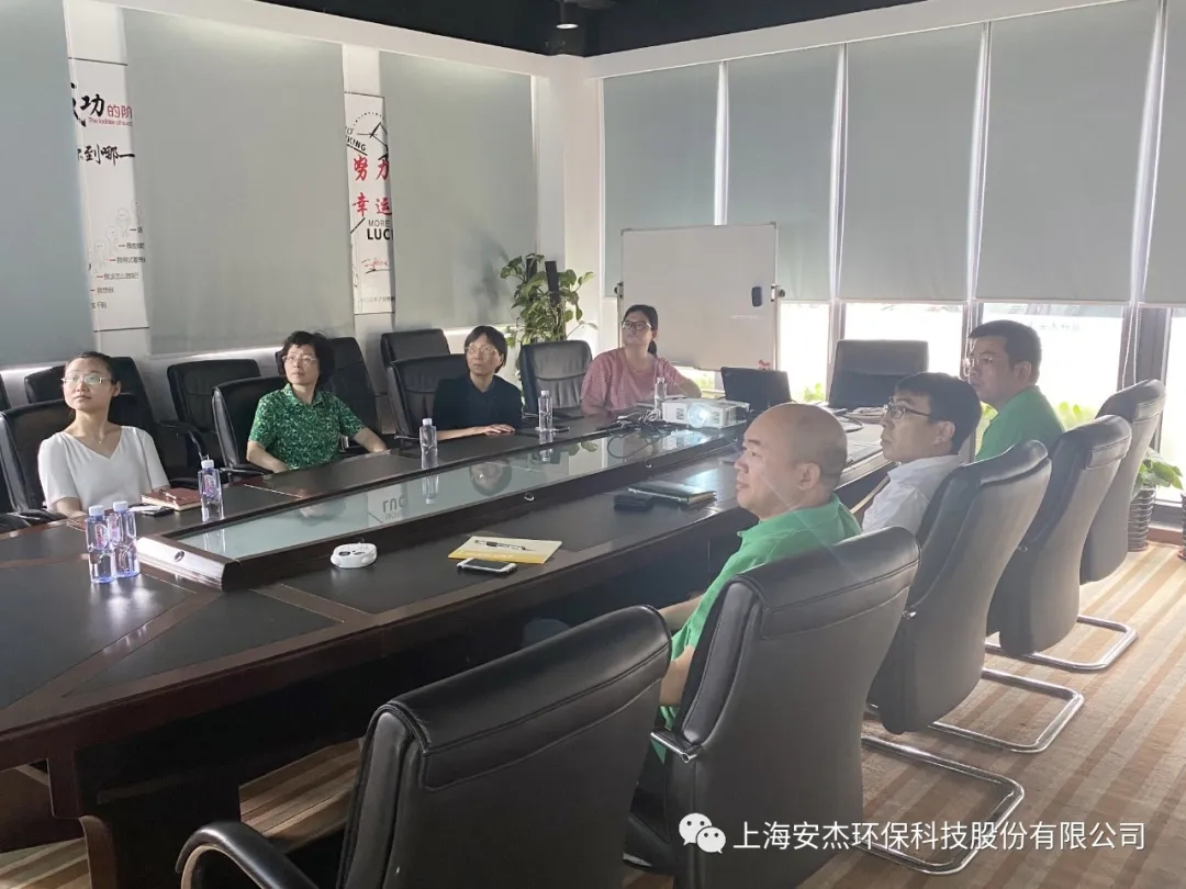 2020年7月22日,寶山區(qū)生態(tài)環(huán)境局局長石純、寶山區(qū)環(huán)境監(jiān)測站站長潘飛飛一行到上海安杰環(huán)保科技股份有限公司進(jìn)行調(diào)研。