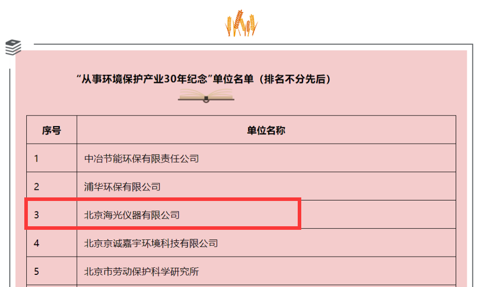 為了肯定環保企事業單位對我國環保產業發展做出的歷史貢獻,激勵環保企業在新時代弘揚環保精神,創新創業,久久為功,為打贏污染防治攻堅戰持續發力,中國環境保護產業協會組織開展了“從事環境保護產業30年紀念”活動。經協會審核、評選、公布,最終在全國各省、自治區、直轄市、副省級環保產業協會的會員單位中評選出52家單位,并于近日為入選單位頒發了榮譽獎牌。海光公司喜獲該榮譽。