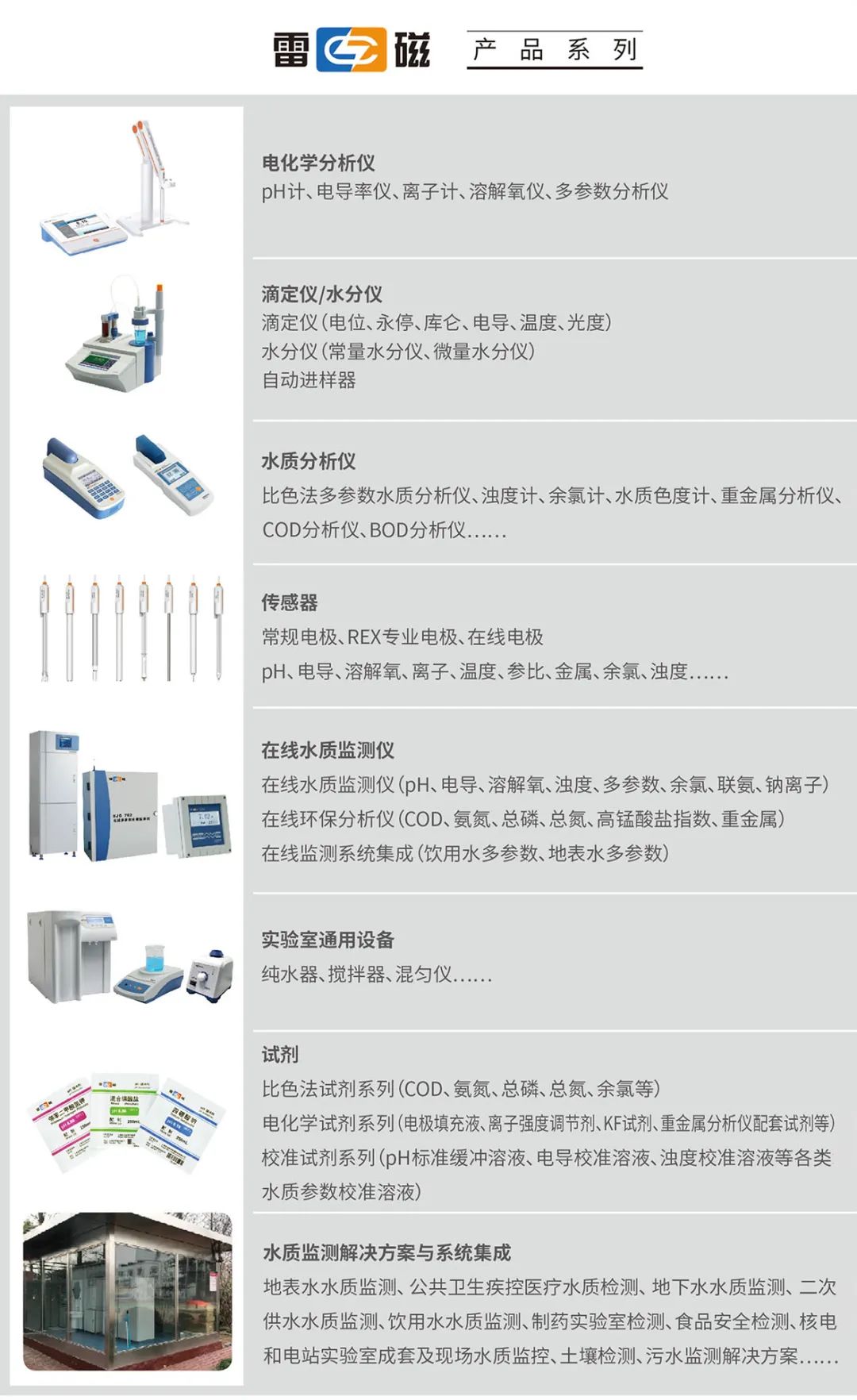 作為中國分析儀器的發源地之一,“雷磁”長期以來不忘初心,牢記使命,以“為提高人們的生活質量,提供高科技分析儀器和優質服務!”為使命,始終致力于水質分析儀器和方法的研究開發,成為行業的領軍企業!