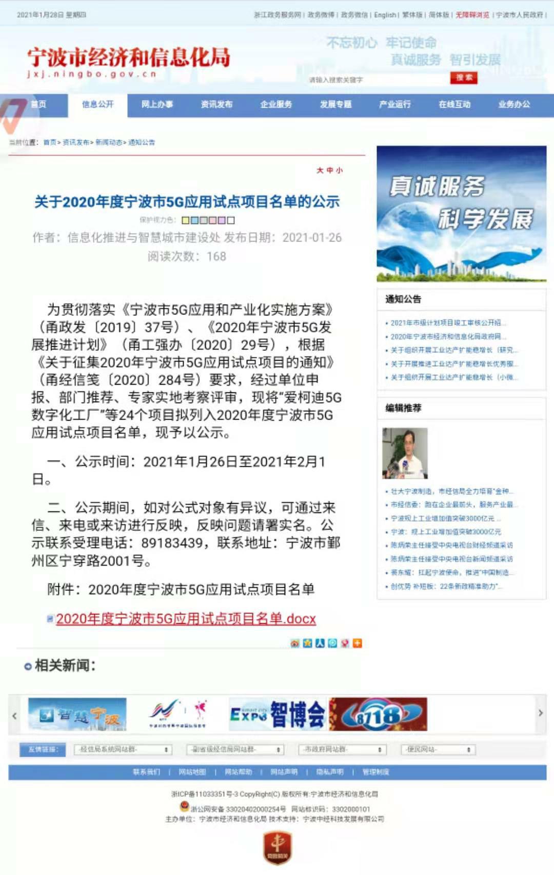 網(水質、漏損)在線預警系統” 被列入2020年度寧波市5G應用試點項