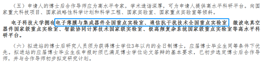 據電子科技大學發布的《電子科技大學誠邀優秀青年科技創新人才申報2023年國家“博新計劃”》介紹,電子科技大學擁有“電子薄膜與集成器件全國重點實驗室”和“通信抗干擾技術全國重點實驗室”。
