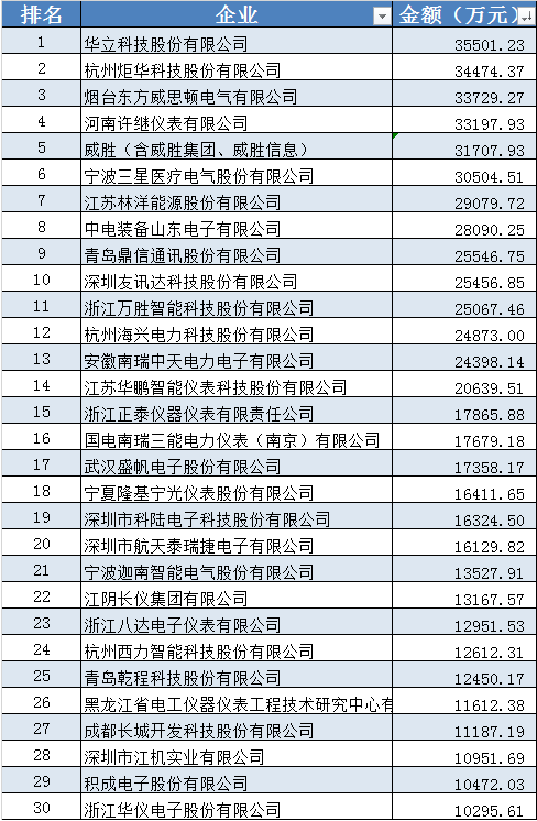 06月02日,國網2023年第一次電能表 (含用電信息采集) 招標采購推薦的中標候選人公示信息發布,本次招標最終總中標金額為90.18億元,環比下降11.34%,同比下降32.10%;總共有80家企業實現中標,其中電能表分項中標企業共68家,用電信息采集分項中標企業40家。本次中標金額前五名企業為華立科技股份有限公司、杭州炬華科技股份有限公司、煙臺東方威思頓電氣有限公司、河南許繼儀表有限公司、威勝(含威勝集團、威勝信息)。