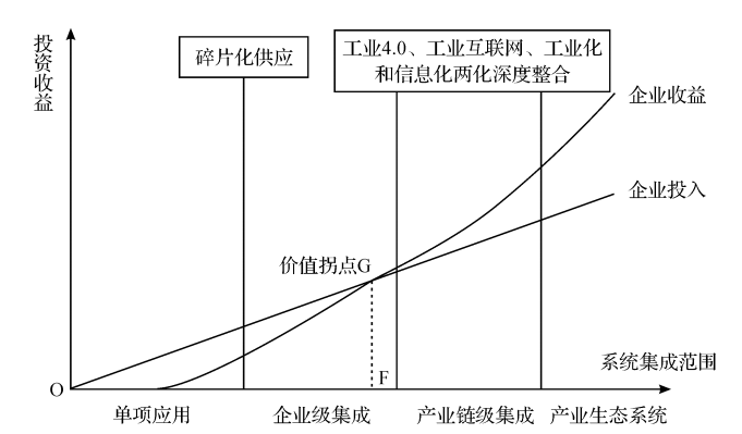 綜上所述,對于制造業數字化改造障礙的認識,國內外學者和企業實踐者基本達成一致:數字化轉型存在兩大基本矛盾,即集成陷阱和中小企業陷阱。“所謂‘集成陷阱’是指企業管理信息的全局優化需求與碎片化供給的矛盾。具體表現為企業在工業化和信息化融合發展的初期階段,各個職能部門各自搞了許多信息系統,卻鮮見信息系統間的連接與集成,最終成為一個個‘信息孤島’”。一般認為,數字化改造只有突破了集成陷阱(突破圖1價值拐點G),企業才會進入工業化和信息化兩化深度融合發展的高級階段,進而進入實質性受益階段。而“所謂‘中小企業陷阱’是指對于廣大中小企業來說,由于缺資金、缺人才,對數字化轉型大都抱有‘不敢轉、不愿轉、不能轉、不會轉、不善轉’的態度;即使有勇于嘗試者,也大都在沒有超越前期沉沒成本(圖1OF段)、尚未突破“集成陷阱”、數字化改造效果尚未顯現前消耗完了所有的資源?!?/span>