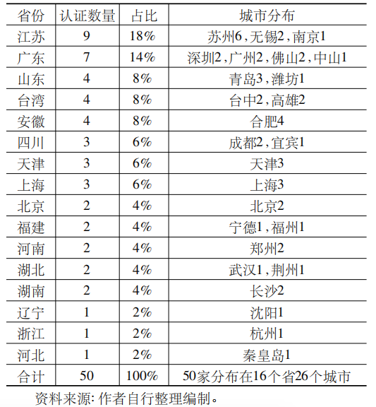 2 中國50家獲評“燈塔工廠”的地域分布