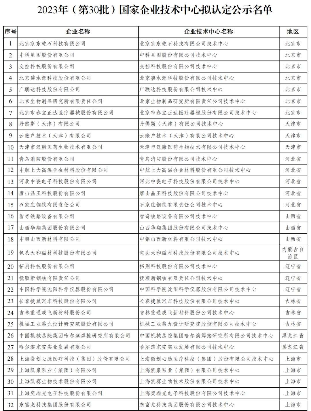 根據《國家企業(yè)技術中心認定管理辦法》(國家發(fā)展改革委、科技部、財政部、海關總署、稅務總局2016年第34號令)和《國家發(fā)展改革委辦公廳關于組織開展2023年(第30批)國家企業(yè)技術中心認定及國家企業(yè)技術中心評價工作的通知》(發(fā)改辦高技〔2023〕207號),在地方主管部門審核和推薦的基礎上,國家發(fā)展改革委創(chuàng)新和高技術發(fā)展司組織了2023年(第30批)國家企業(yè)技術中心的認定復核工作,123家企業(yè)和6家分中心擬認定為新一批國家企業(yè)技術中心。其中儀器儀表企業(yè)5家,分別是:丹佛斯(天津)有限公司技術中心、中國科學院沈陽科學儀器股份有限公司技術中心、杭州炬華科技股份有限公司技術中心、煙臺艾睿光電科技股份有限公司技術中心、青島乾程科技股份有限公司技術中心。