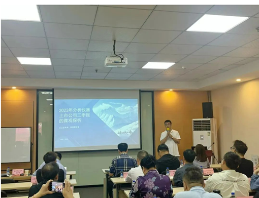 隨后,代理商分會副理事長林欣田作了題為“2023年分析儀器上市公司三季報的微觀探析”的分享。他從銷售額、管理與經營和供應鏈三個方面對分析儀器產業鏈相關的部分上市公司進行了深入分析,通過第三季度財報數據來探究中國及國際分析儀器行業市場的發展情況及未來前景。
