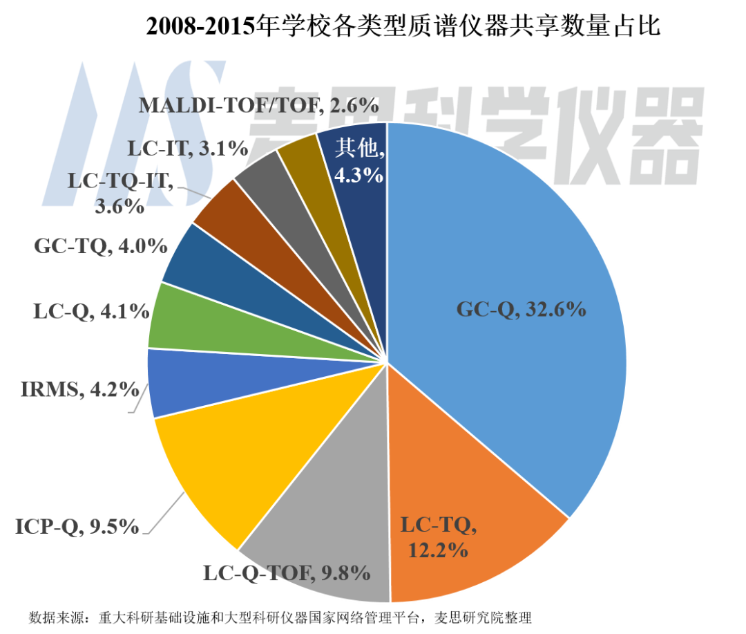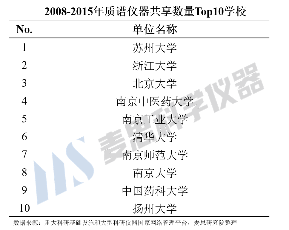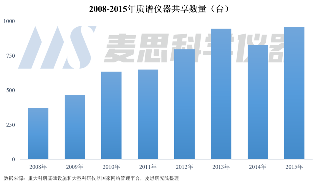 根據麥思研究院統計,2008-2015年共享平臺上約有5600臺質譜儀器開始啟用,其中約2000臺來自各類學校。