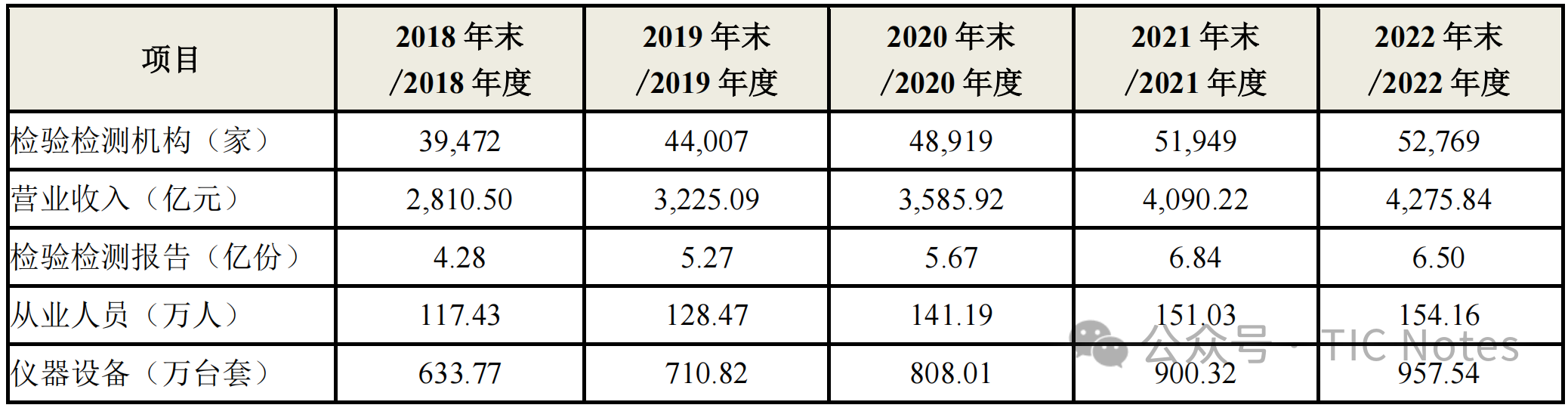 我國檢驗(yàn)檢測(cè)服務(wù)業(yè)現(xiàn)已覆蓋建筑工程、環(huán)保、衛(wèi)生、農(nóng)業(yè)、質(zhì)檢、食品、藥品、機(jī)械、電子、輕工、紡織、航空等國民經(jīng)濟(jì)各個(gè)領(lǐng)域,根據(jù)國家市場(chǎng)監(jiān)督管理總局于 2023 年 6 月發(fā)布的《2022 年度全國檢驗(yàn)檢測(cè)服務(wù)業(yè)統(tǒng)計(jì)簡報(bào)》(以下簡稱“統(tǒng)計(jì)簡報(bào)”),我國檢驗(yàn)檢測(cè)行業(yè)規(guī)模繼續(xù)擴(kuò)大;2022 年末,獲得資質(zhì)認(rèn)定的各類檢驗(yàn)檢測(cè)機(jī)構(gòu) 52,769 家,較 2021 年末增長 1.58%;2022 年度實(shí)現(xiàn)營業(yè)收入 4,275.84 億元,較 2021 年度增長 4.54%;2022 年度共向社會(huì)出具檢驗(yàn)檢測(cè)報(bào)告 6.50 億份,較 2021 年度下降 4.97% 。