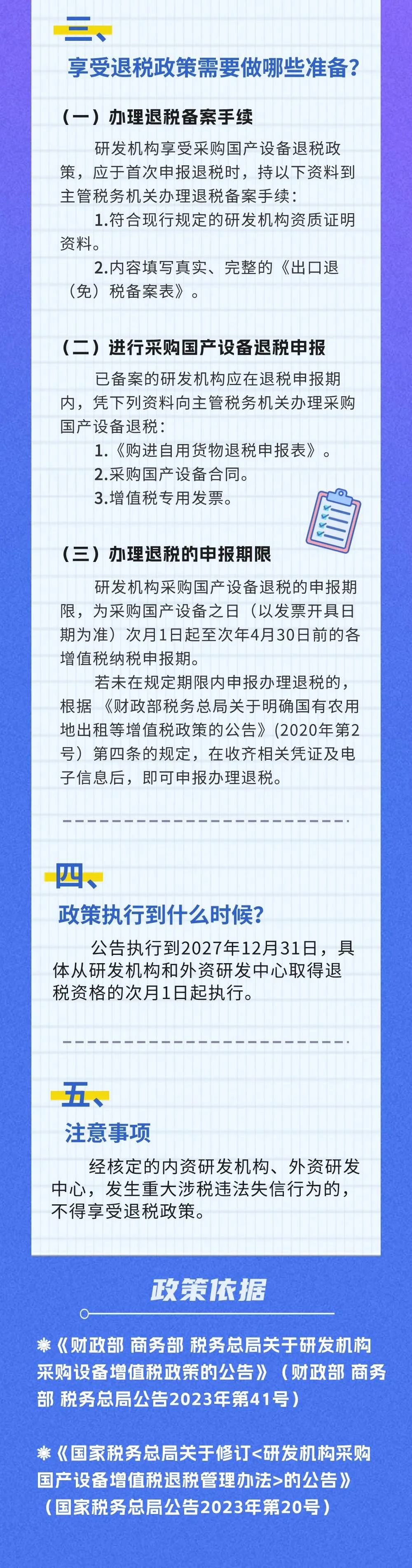 日前,財政部、商務部、稅務總局三部委聯合發文《關于研發機構采購設備增值稅政策的公告》明確指出內資研發機構和外資研發中心采購國產設備全額退還增值稅。也就是說只要是研發中心,采購國產設備,一律退回增值稅!國家在用真金白銀補貼國產設備!其中,哪些研發機構能夠適用政策?哪些國產設備能夠退還增值稅?享受退稅政策需要做哪些準備?...今天,小編帶您看看具體內容~↓↓↓