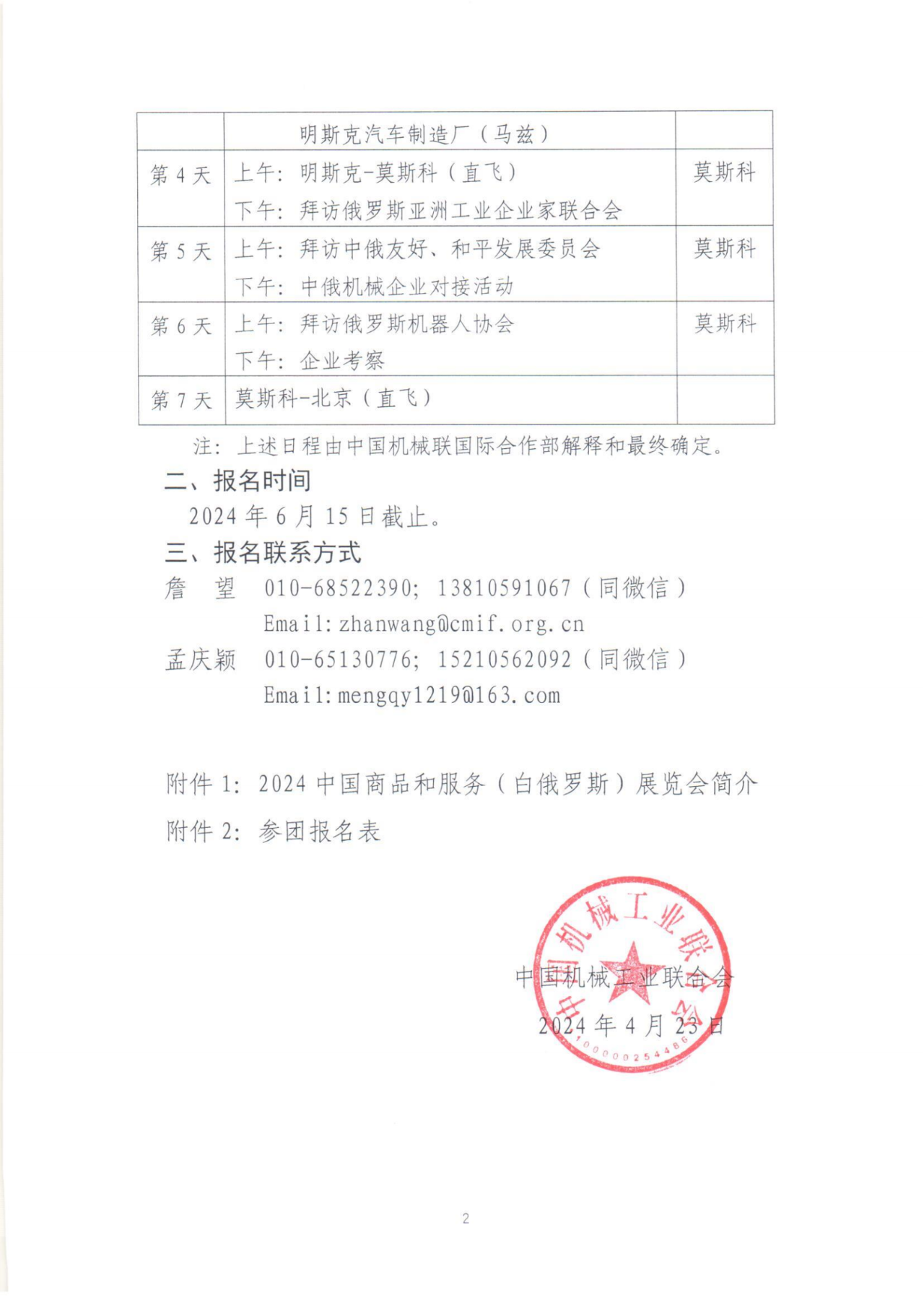 為深入踐行“一帶一路”倡議,深化中白、中俄機械行業(yè)對接合作,助力中國機械聯(lián)會員企業(yè)進一步拓展歐亞經濟聯(lián)盟市場,搭建企業(yè)間國際貿易和投資橋梁,中國機械工業(yè)聯(lián)合會擬于2024年8月中下旬組團赴白俄羅斯、俄羅斯考察,開展產業(yè)交流和對接。現(xiàn)將活動通知發(fā)布如下。