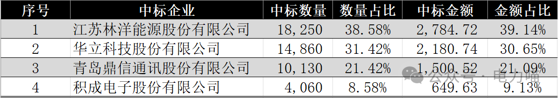 1 用電信息采集物資整體中標情況