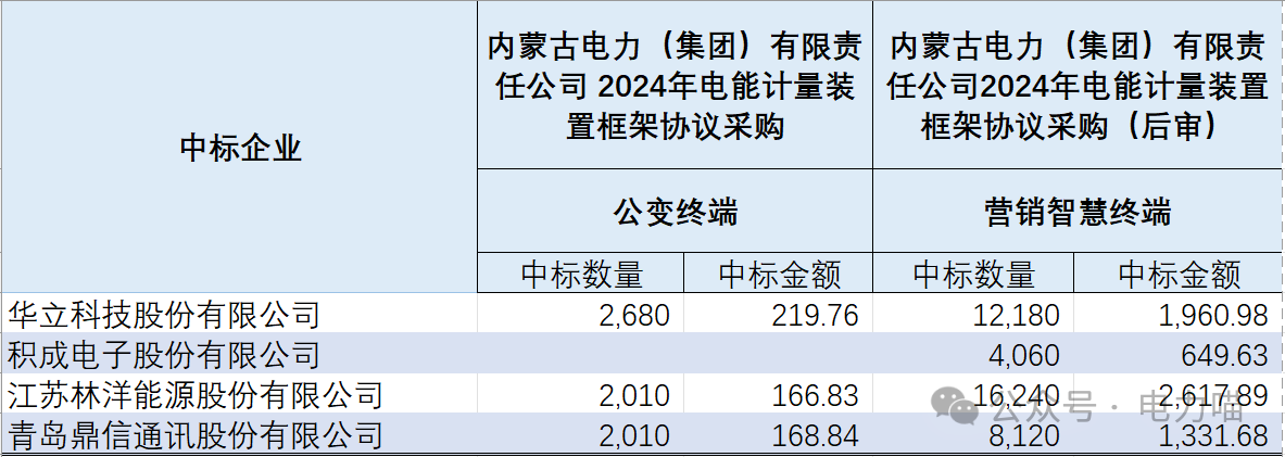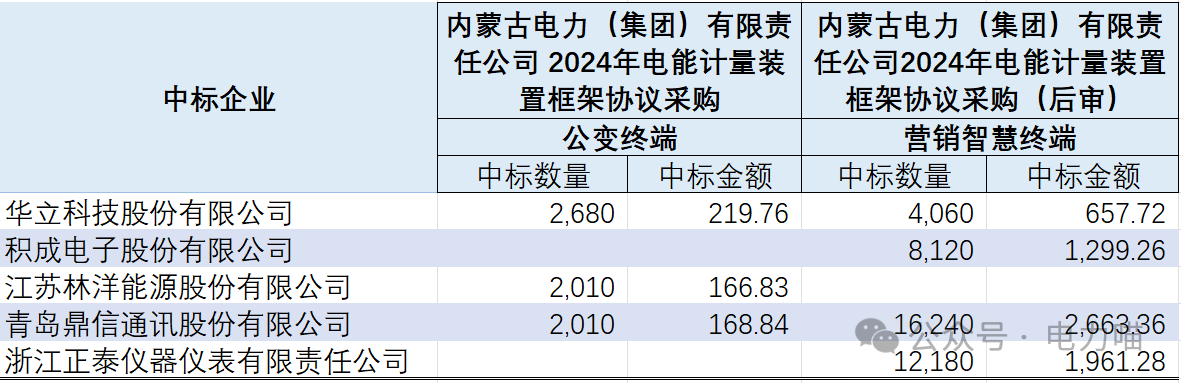 蒙西電網2024年電能計量裝置框架協議項目中標結果