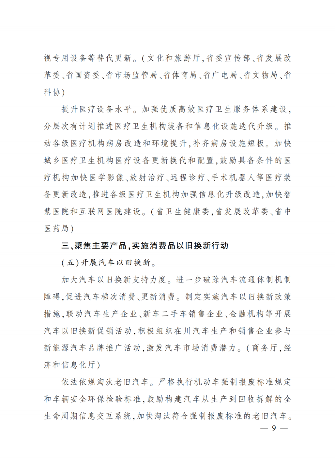 5月11日四川省人民政府網站發布關于印發《四川省推動大規模設備更新和消費品以舊換新實施方案》的通知。