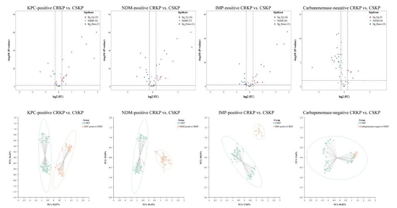 加入IPM后,相對于CSKP,各亞型的CRKP均出現了部分VOCs的顯著性變化(表 2,圖 8)。結果表明IPM的加入可有效地鑒定產CBPMCRKP,包括KPC陽性菌株、NDM陽性菌株和IPM陽性菌株。
