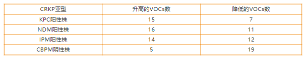 8 加入IPM后各亞型CRKP產生的VOCs的變化(相對于CSKP