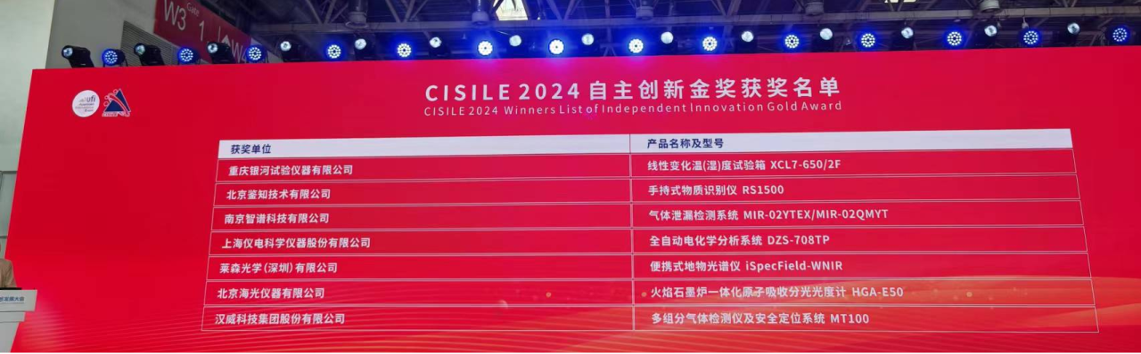 此外,本屆展會的重頭戲之一,是每兩年一次的“自主創(chuàng)新金獎”頒獎盛典。經(jīng)過嚴格的評選和審核,26款在技術(shù)創(chuàng)新、產(chǎn)品應(yīng)用和市場推廣等方面表現(xiàn)出色的國產(chǎn)科學儀器產(chǎn)品脫穎而出。銀河儀器最新研制產(chǎn)品——線性變化溫(濕)度試驗箱XCL7-650-2F憑借技術(shù)創(chuàng)新經(jīng)過層層篩選后獲此殊榮,展現(xiàn)了銀河儀器的科研實力和創(chuàng)新活力。