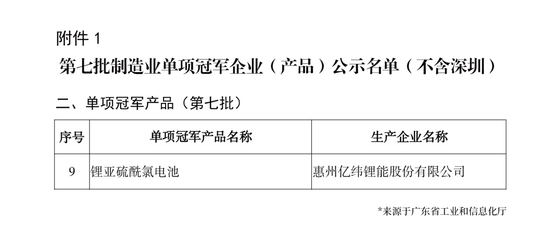 此次成功入選“國家級(jí)制造業(yè)單項(xiàng)冠軍產(chǎn)品”,是對(duì)億緯鋰能鋰亞電池深厚的行業(yè)積淀、先進(jìn)的技術(shù)水平、領(lǐng)先的市場地位、精益的質(zhì)量水平的高度認(rèn)可。