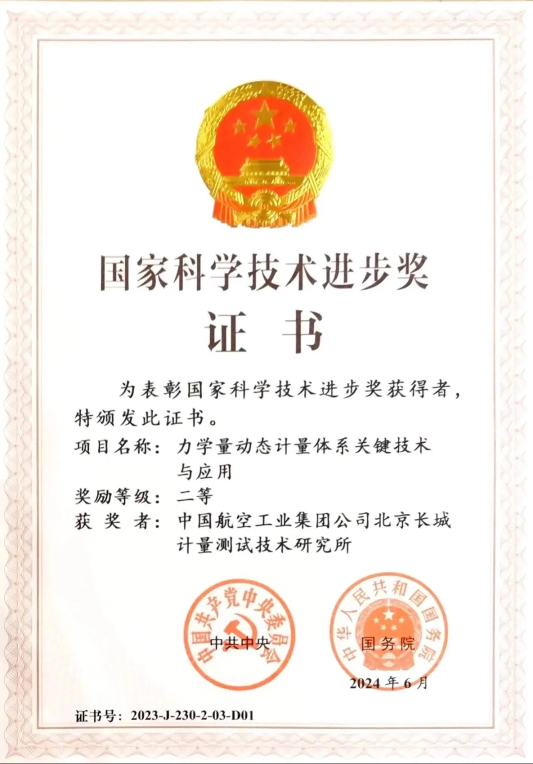 喜報!航空工業計量所榮獲國家科學技術進步二等獎!