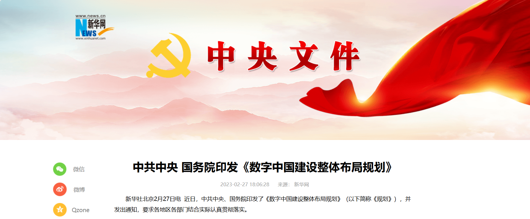 ⚪2023年,中共中央、國務院發布《數字中國建設整體布局規劃》,指出:以打通數字基礎設施大動脈和暢通數據資源大循環為基礎,以構建數字技術創新體系和數字安全屏障為關鍵能力。