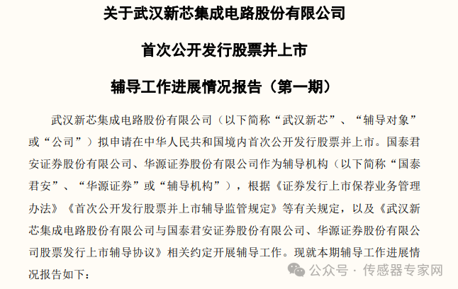 2024年5月,武漢新芯與國(guó)泰君安、華源證券簽署上市輔導(dǎo)協(xié)議,截止2024年7月11日,已完成第一期上市輔導(dǎo)工作。
