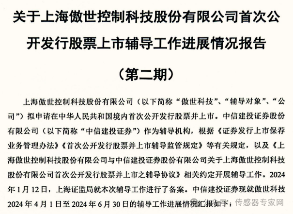 傲世控制于2024年1月10日簽署輔導(dǎo)協(xié)議,輔導(dǎo)機(jī)構(gòu)為中信建投,目前擬上市板塊仍未披露,截止2024年7月22日,已完成第二期上市輔導(dǎo)工作。