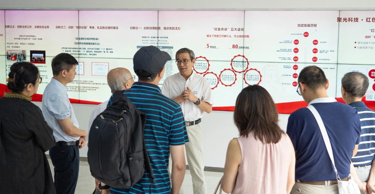 專家考察團(tuán)一行參觀了聚光科技綠色科技展廳,陳熒平首先簡(jiǎn)要介紹了聚光科技黨建的發(fā)展歷程、紅色傳感黨建品牌,以及雙領(lǐng)制、雙積分制、與業(yè)務(wù)深度結(jié)合的特色做法。