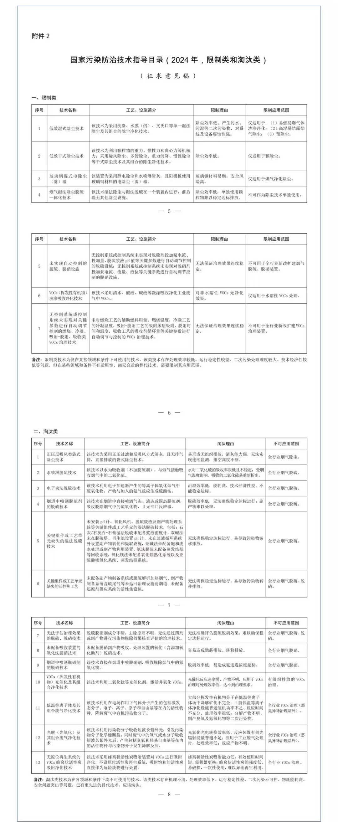 為更好發(fā)揮技術(shù)指導(dǎo)作用,推動(dòng)生態(tài)環(huán)境領(lǐng)域設(shè)備更新和技術(shù)進(jìn)步,生態(tài)環(huán)境部日前發(fā)布關(guān)于征求《國家污染防治技術(shù)指導(dǎo)目錄(2024年,限制類和淘汰類)》(征求意見稿)意見的函,向有關(guān)單位征求意見。