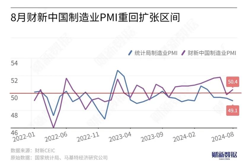 9月2日公布的8月財新中國制造業采購經理指數(PMI)錄得50.4,較7月回升0.6個百分點,重回榮枯線以上。