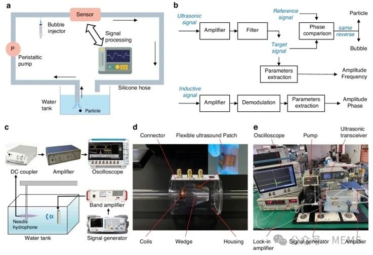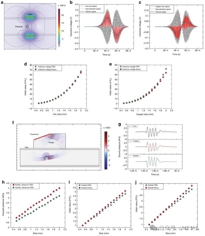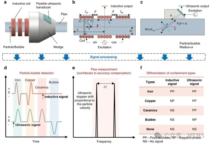 該方法在測量流速的同時(shí)能夠區(qū)分鐵磁性金屬顆粒、非鐵磁性金屬顆粒、非金屬顆粒和氣泡。微機(jī)械加工可以顯著減小傳感器的尺寸,而柔性襯底使安裝更加方便,增強(qiáng)聚焦聲場,從而提高檢測能力。這項(xiàng)研究成果已于近期發(fā)表在Microsystems & Nanoengineering期刊上。