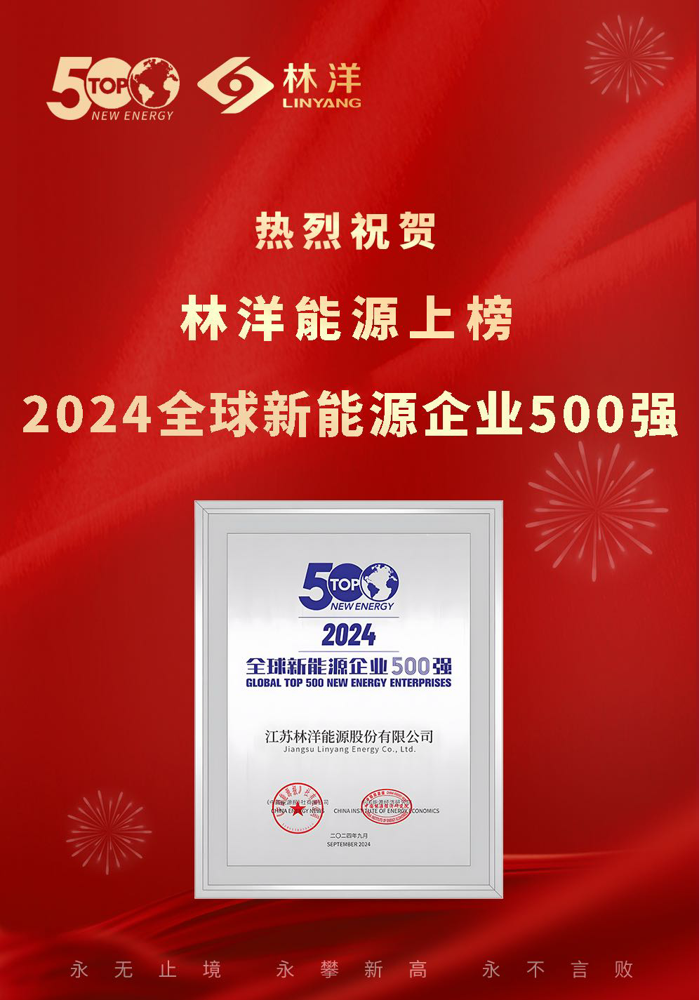 林洋能源成功上榜“2024全球新能源企業(yè)500強(qiáng)”
